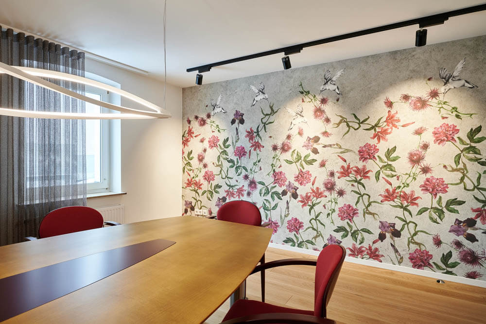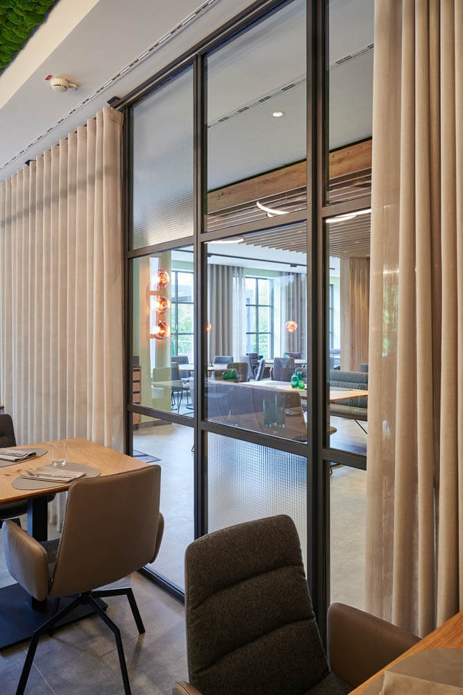 Mit der Gestaltung der Restaurants und der Lobby ist die Arbeit von raumideen im VierJahreszeiten noch nicht getan. Mehrere Seminarräume wurden ebenfalls – in verschiedenen Stilen und inklusive Veranstaltungstechnik – neu ausgestattet. Im nächsten Schritt folgen der Empfangsbereich samt Bar sowie die Neugestaltung von bestehenden Hotelzimmern und aller Räume eines neuen Hoteltrakts. „Da sind wir genau in unserem Element“, betont Oberste. „Wir begleiten den Kunden als Partner von Anfang bis Ende durch das Projekt und übernehmen alle Leistungen, die er in unsere Hände legen möchte.“
