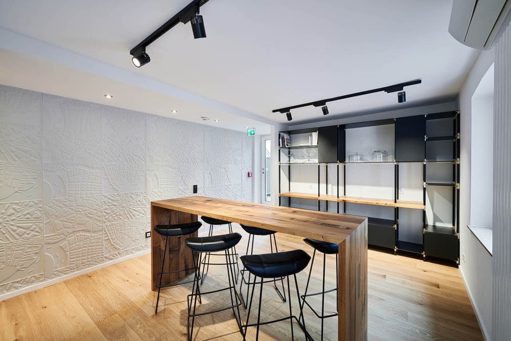 raumideen-Inhaber Christoph Oberste: „Wir kennen die Trends, und wir besorgen nicht nur die passende Möblierung, sondern übernehmen die komplette Abwicklung: von der innenarchitektonischen Planung über handwerkliche Arbeiten bis hin zur technischen Ausstattung. Im VierJahreszeiten waren wir als Teil eines Planungsteam konstruktiv dabei.“