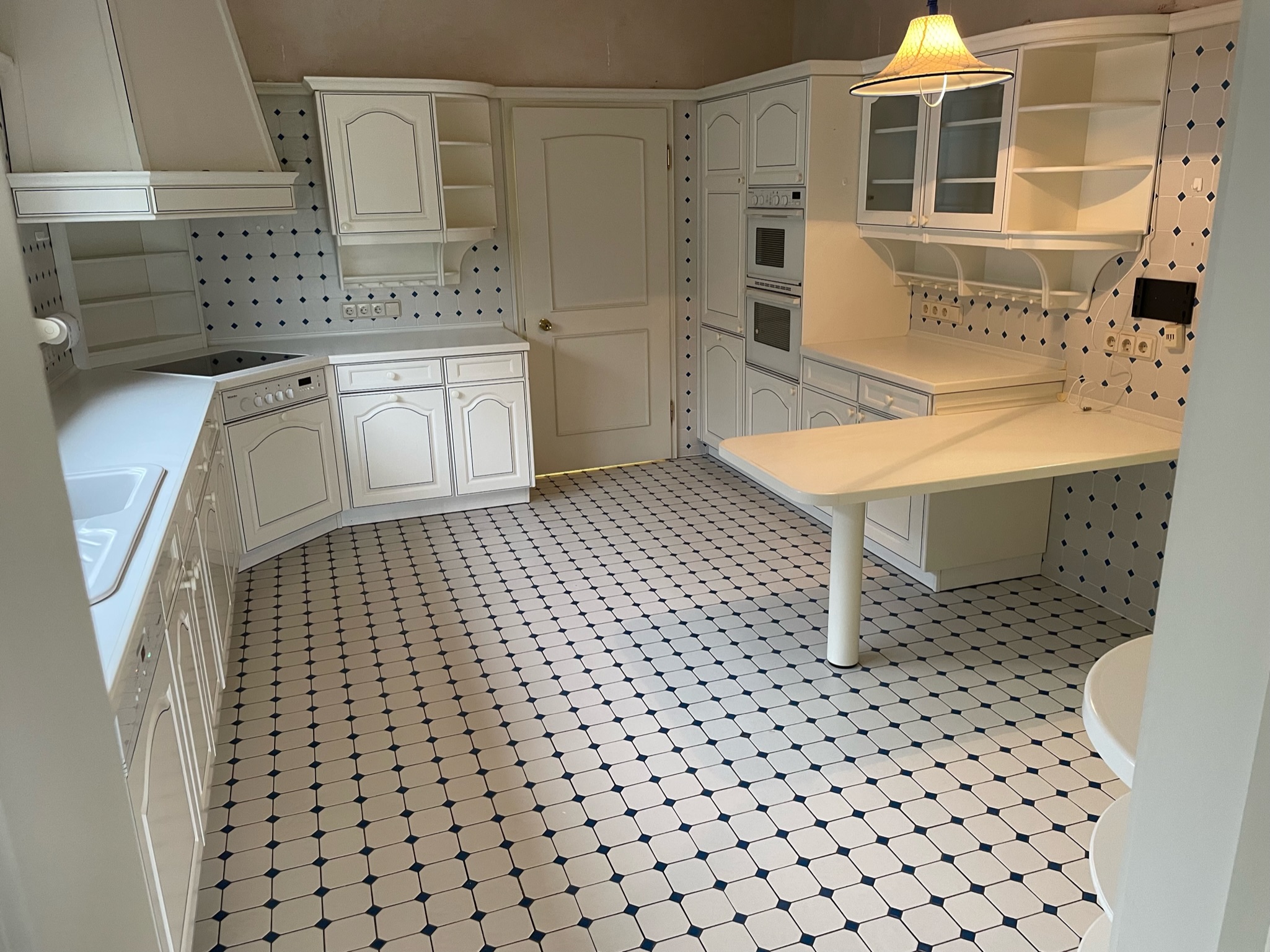 Der neu gestaltete Hauswirtschaftsraum im Obergeschoss erhielt eine maßgefertigte Einbauküche, die perfekt auf die Gegebenheiten des Raumes abgestimmt ist. Die Kombination aus hellen Farben und hochwertigen Materialien sorgt für eine angenehme Atmosphäre während der Hausarbeit.